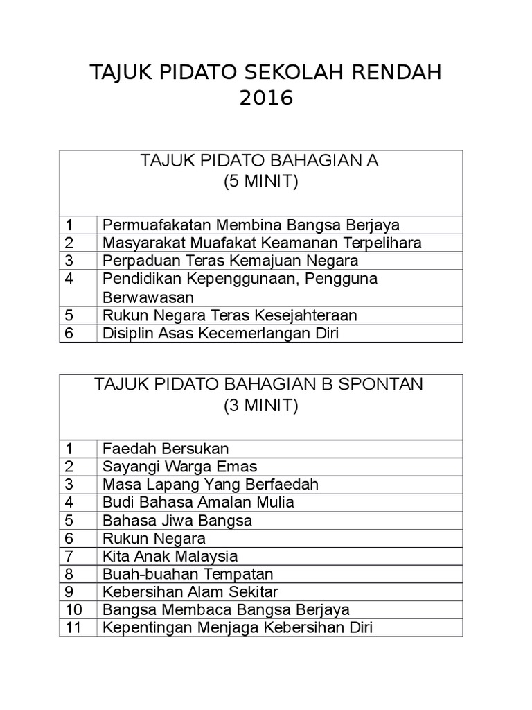 Tajuk Pidato Sekolah Rendah 2016 Pdf